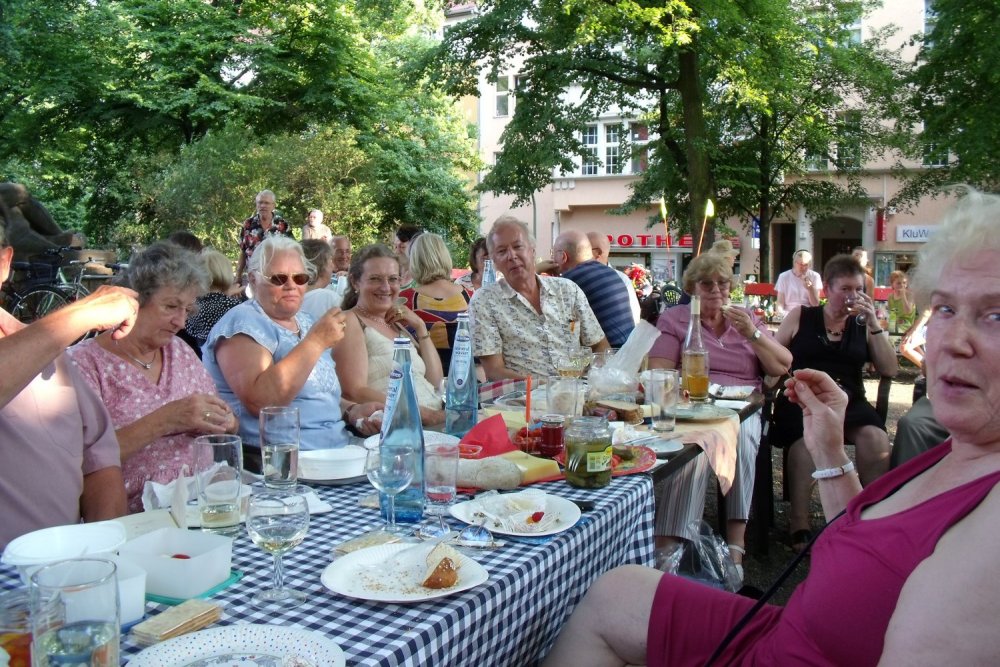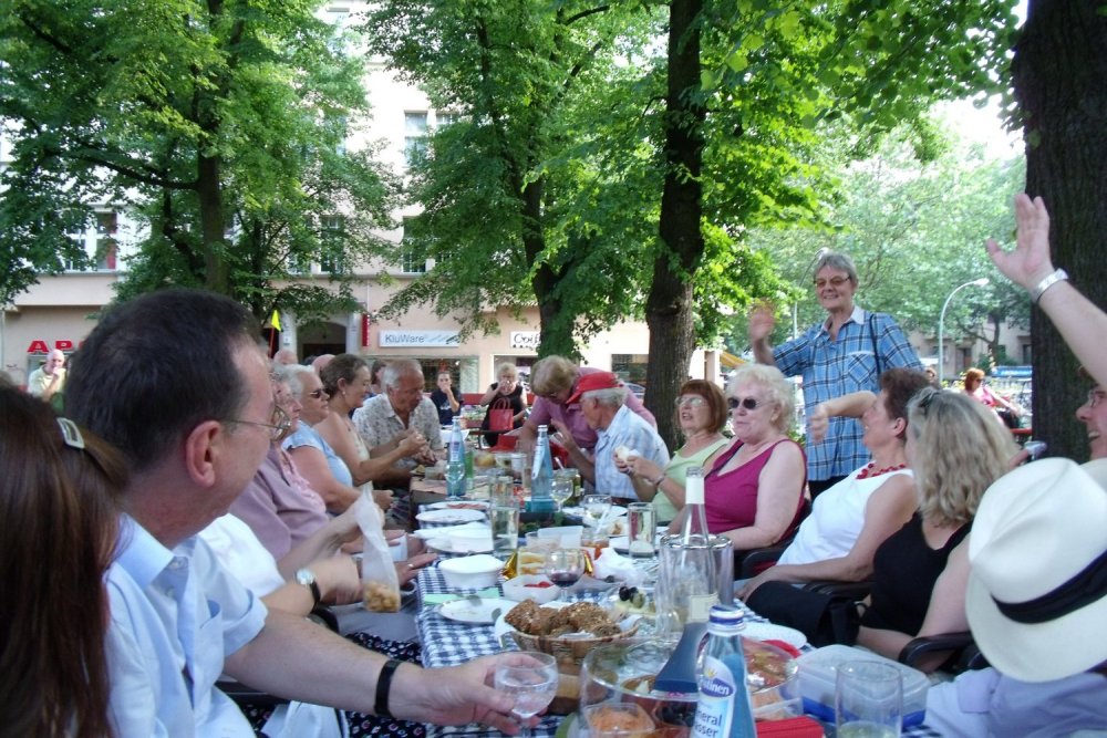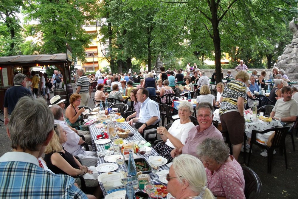 Archiv des Partnerschaftsverein Charlottenburg 14. Juli 2010 - Stammtisch am WeinbrunnenUnser Stammtisch im Monat Juli fand am Weinbrunnen auf dem Rüdesheimer Platz statt. Angesichts der heißen Temperaturen war ein schattiges Plätzchen unter Bäumen genau richtig und so war das Treffen sehr gut besucht, wie die nachfolgenden Bilder dokumentieren: