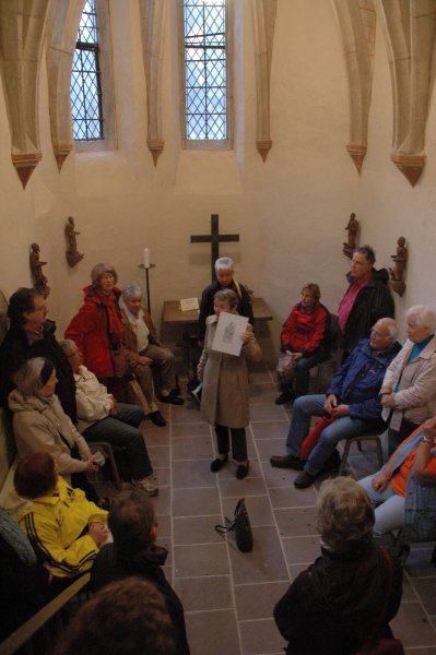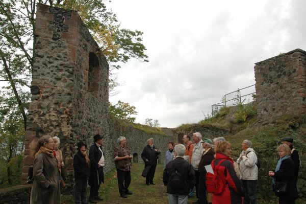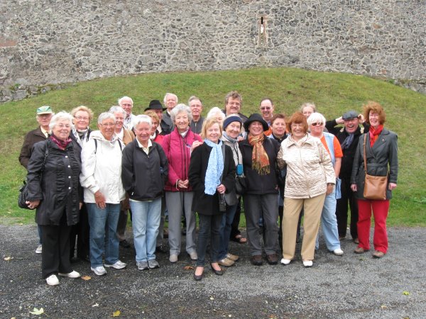 Die Reisegruppe vor der Stadtmauer in Amöneburg