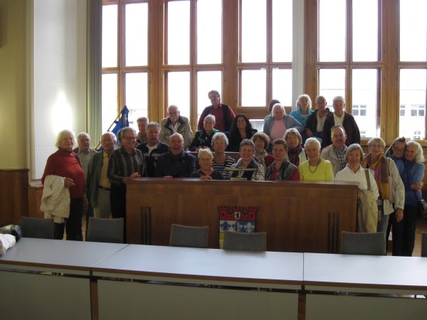 Archiv des Partnerschaftsverein Charlottenburg 11. September 2013 - Besichtigung des neuen BVV-SaalesAnlässlich unseres Stammtisches am 11.09.2013 gab es eine Besichtigung des neuen BVV-Saales im Rathaus Charlottenburg. In diesem Raum tagte bis zur Zusammenlegung der beiden Bezirke Charlottenburg und Wilmersdorf die Bezirksverordnetenversammlung Charlottenburg. Nach der Bezirksfusion wurde der BVV-Saal im Rathaus Wilmersdorf für die neue gemeinsame BVV ausgewählt. Nachdem beschlossen wurde, das Rathausgebäude Wilmersdorf als Bürogebäude des Bezirks aufzugeben, wurde der erneute Umzug erforderlich. Die Vorsteherin der Bezirksverordnetenversammlung Charlottenburg-Wilmersdorf, Frau Judith Stückler, die übrigens auch Mitglied unseres Vereins ist, erklärte den Teilnehmerinnen und Teilnehmern die Aufgaben und Wirkungsweise des Bezirksparlaments und beantwortete anschließend noch viele Fragen. Auch an dieser Stelle nochmals ganz herzlichen Dank dafür. Nachfolgend ein paar Fotos von der Besichtigung: