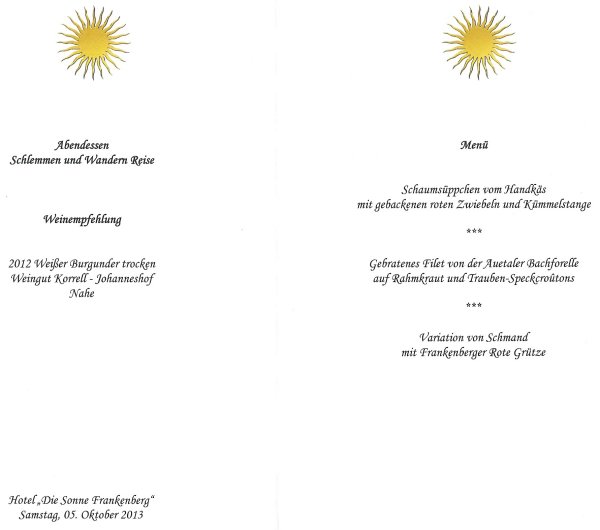 Schlemmermenü im Hotel Restaurant "Die Sonne