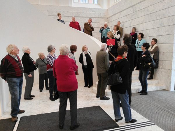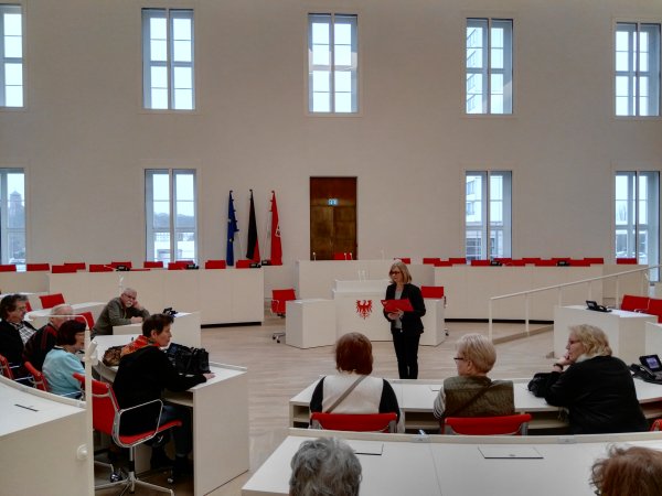 Archiv des Partnerschaftsverein Charlottenburg 22. Februar 2016 - Besichtigung des Landtagsgebäudes in PotsdamIn Anlehnung an das historische Stadtschloss, dass zu DDR-Zeiten gesprengt wurde, entstand in den Jahren 2010 bis 2014 am Alten Markt im Potsdamer Stadtzentrum ein Neubau, in dem nach Fertigstellung der Landtag des Bundeslandes Brandenburg sein neues Domizil fand. Das Gebäude ist so konzipiert, das bei einem evtl. späteren Zusammenschluss der beiden Länder Berlin und Brandenburg, alle Abgeordneten beider ehemaligen Bundesländer in dem Gebäude Platz finden. In der Zwischenzeit ist ein Bereich an den Landerechnungshof vermietet. Bei einer Führung durch das Haus wurden den Teilnehmerinnen und Teilnehmern viele interessante Detail über die Geschichte und die Nutzung sowohl des alten Stadtschlosses, also auch dem Nachbau vermittelt. Nachfolgend ein paar Impressionen von der Besichtigung: