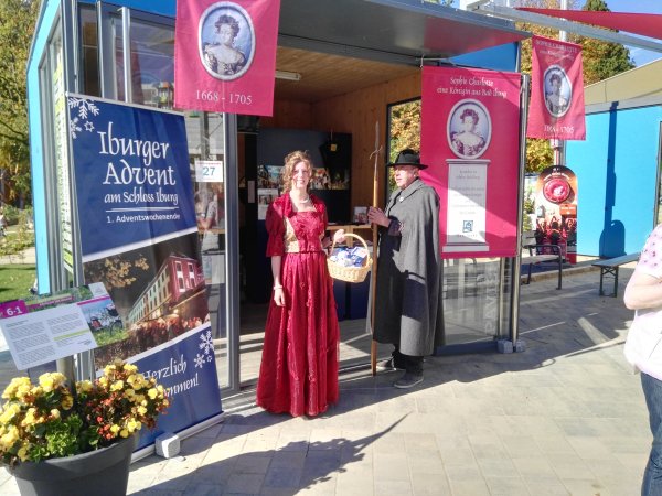 Dafür gab es einen ganz besonderen Anlass: Bekanntermaßen ist ja die Namensgeberin Charlottenburgs - Sophie Charlotte - auf dem Schloss Bad Iburg geboren und am 12. Oktober wäre ihr 350. Geburtstag gewesen. Und so war die letzte LaGa-Woche der ersten Königin von Preußen gewidmet. Unsere Mitglieder Thomas und Maike Neumann haben den Stand in Bad Iburg besetzt und viele Fragen zur Städtepartnerschaft beantwortet. Das Wetter spielte auch mit und bei Temperaturen von 25 bis 27 Grad sowie Sonne von früh bis spät waren am letzten Tag der Landesgartenschau noch einmal 10.000 Besucher auf dem Gelände. Insgesamt hat die Veranstaltung in den letzten sechs Monaten mehr Besucher als erwartet gehabt, so dass man den Verantwortlichen in Bad Iburg zu dieser gelungenen Landesgartenschau nur gratulieren kann. Ein großer Dank geht an das Team vom Tourismusverband Osnabrücker Land in Bad Iburg, die unseren Besuch vorbereitet haben. Nachfolgend ein paar Fotos: