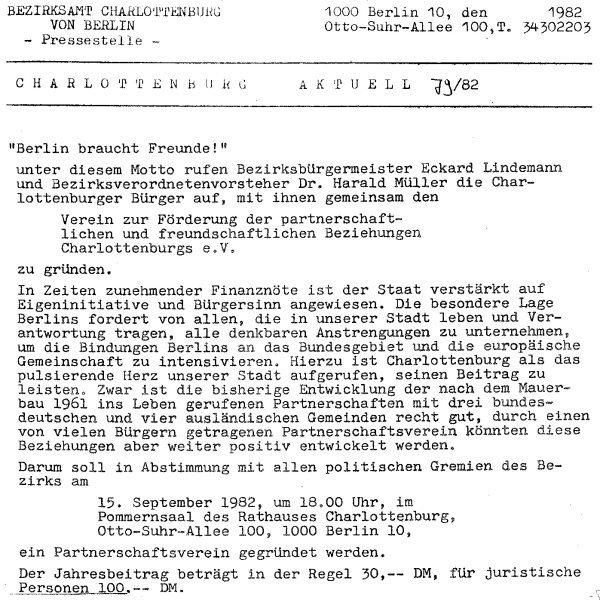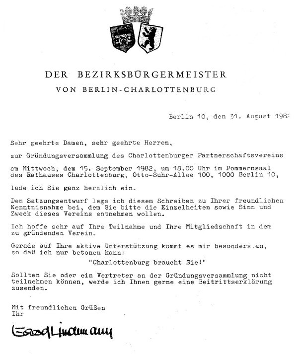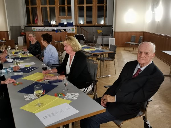 Archiv des Partnerschaftsverein Charlottenburg 17. September 2022 - Jubiläumsfeier 40 Jahre Partnerschaftsverein Am 15. September 1982 fand die Gründungsversammlung unseres Vereins statt. 40 Jahre sind seitdem vergangen, also ein guter Grund für eine Jubiläumsveranstaltung. Nicht nur Mitglieder des Vereins waren der Einladung unseres Vorstandes gefolgt, auch einige Ehrengäste konnten wir begrüßen. So waren der BVV-Vorsteher Herr Tillinger, Herr Bezirkstadtrat Schruoffeneger und der ehemalige Bezirksbürgermeister Herr Naumann anwesend. Besonders gefreut hat es alle, das unser Gründungsmitglied, Herr Helmut Fischer in Begleitung seiner Gattin erschienen war. Den weitesten Weg zu uns hatten aber zwei Gäste aus unserer Partnerstadt Mannheim, nämlich das Ehepaar Joa vom dortigen Förderverein Städtepartnerschaften Mannheim e.V. über deren Besuch wir uns sehr gefreut haben. Für den musikalischen Rahmen sorgten Frau Czumanski-Scheidt und Herr Soder von der Musikschule City West und Herr Günter Rüdiger vom Zimmertheater Steglitz. Für den kulinarischen Rahmen hatte die Familie Krejci vom Kulturbiergarten im Jungfernheidepark gesorgt.