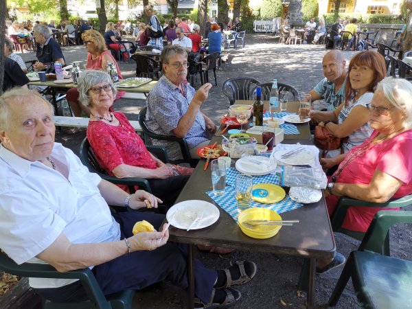 Bei einem leichten Wind unter schattigen Bäumen ließ es sich gut aushalten und die mitgebrachten Delikatessen und der Wein aus dem Rheingau schmeckten sehr gut.